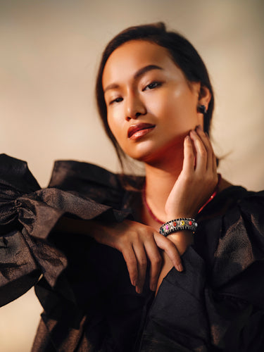 A timeless celebration of geometry and spirit — the Navratna Deco (7 stones) bracelet reimagines ancient wisdom through the lens of Art Deco glamour. Featuring the sacred ensemble of nine natural gemstones, each symbolizing a celestial force, this bracelet is a talisman of harmony, protection, and cosmic energy.